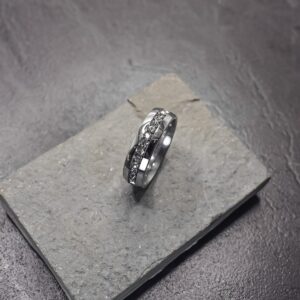 Este anillo es fabricado en Titanio inoxidable anodizado y con enchapado en oro de 18kt, platino y/o tugsteno