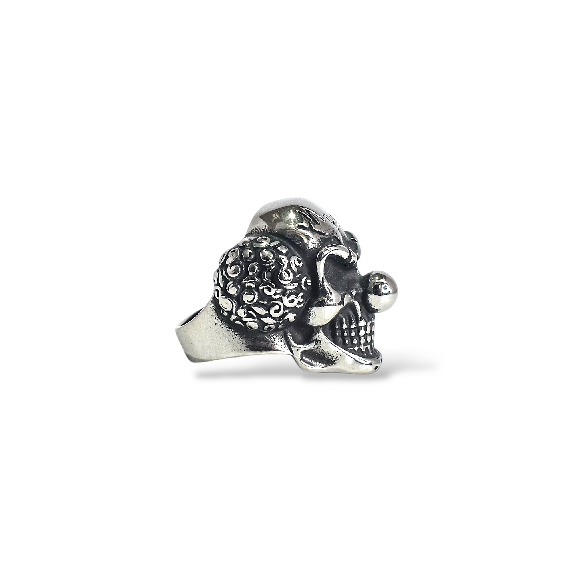 Anillo fabricado en titanio inoxidable anodizado con revestimiento en platino de alta dureza y resistencia, enchapado en  tugsteno.