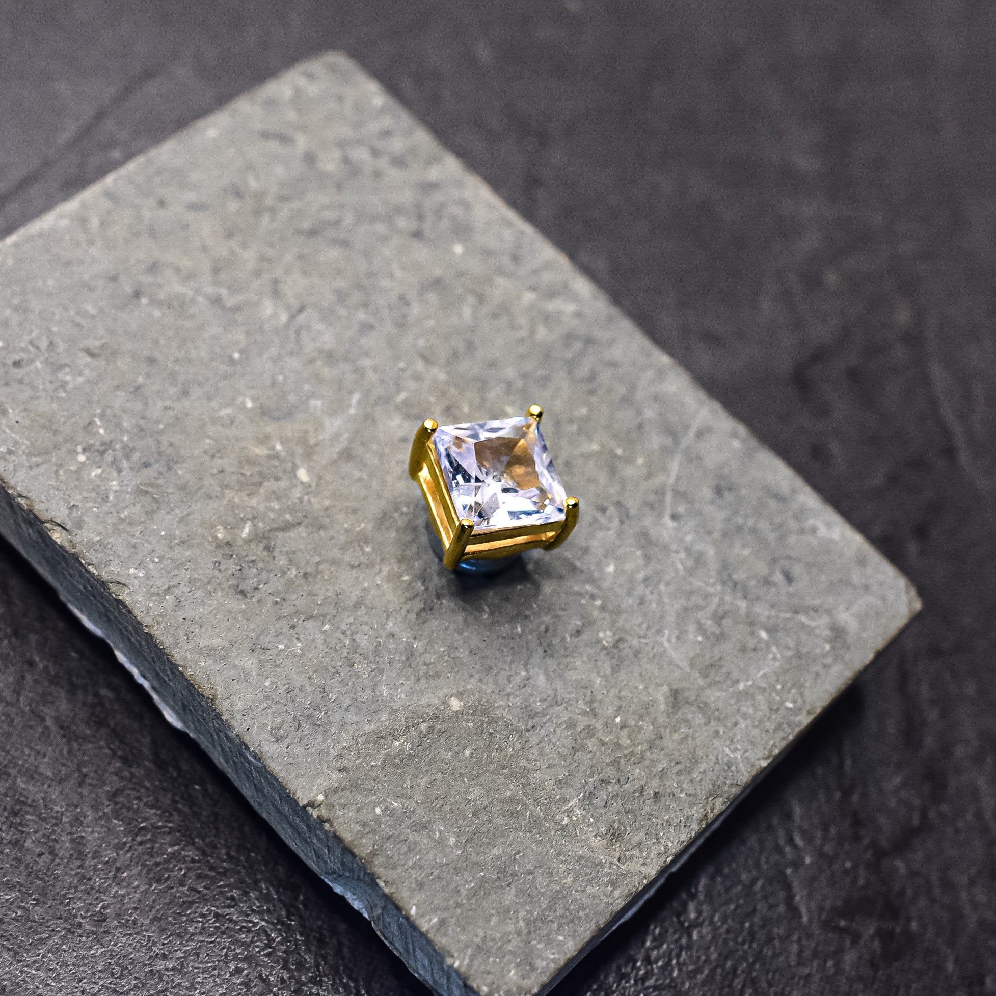 Este arete es fabricado en titanio inoxidable anodizado con revestimiento de platino y enchapado de oro18kt imantado de alta precisión y engaste de zircón austriaco autentico.