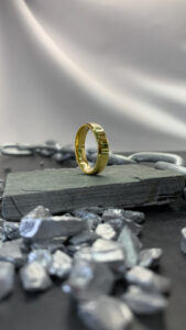 Anillo fabricado en titanio inoxidable con revestimiento por anodizado y enchapado de oro18kt de alta dureza y resistencia.