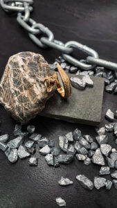Anillo fabricado en titanio inoxidable con revestimiento por anodizado y enchapado de oro18kt de alta dureza y resistencia.