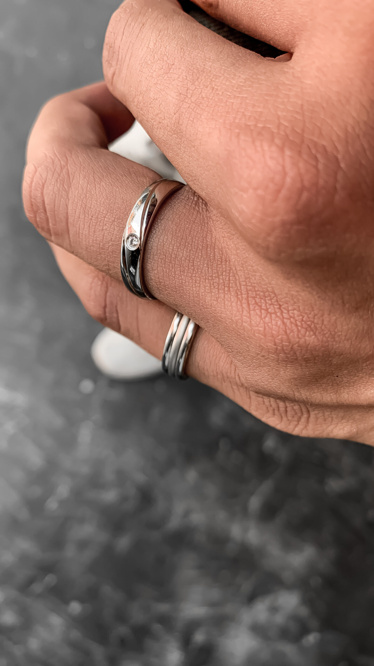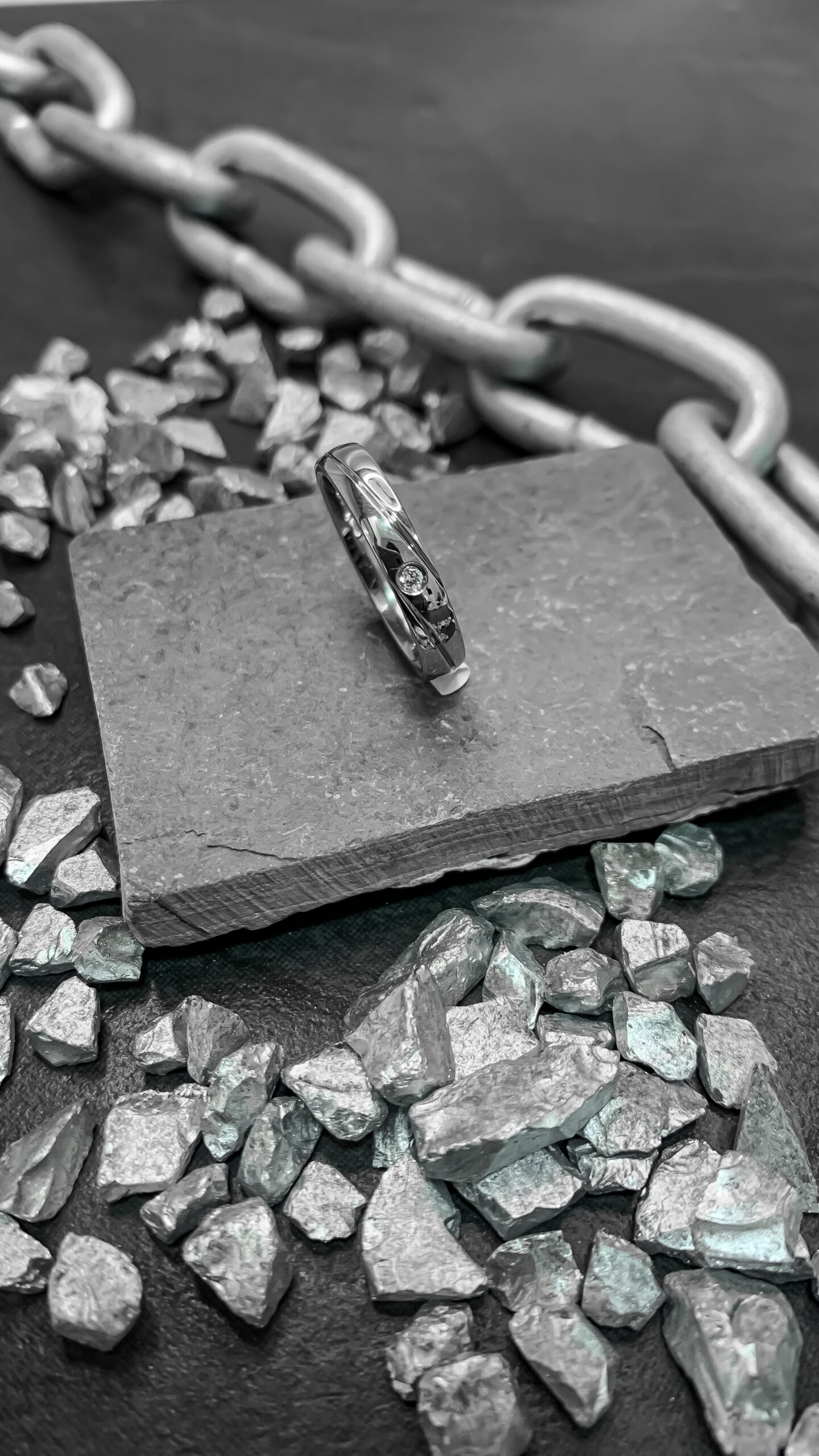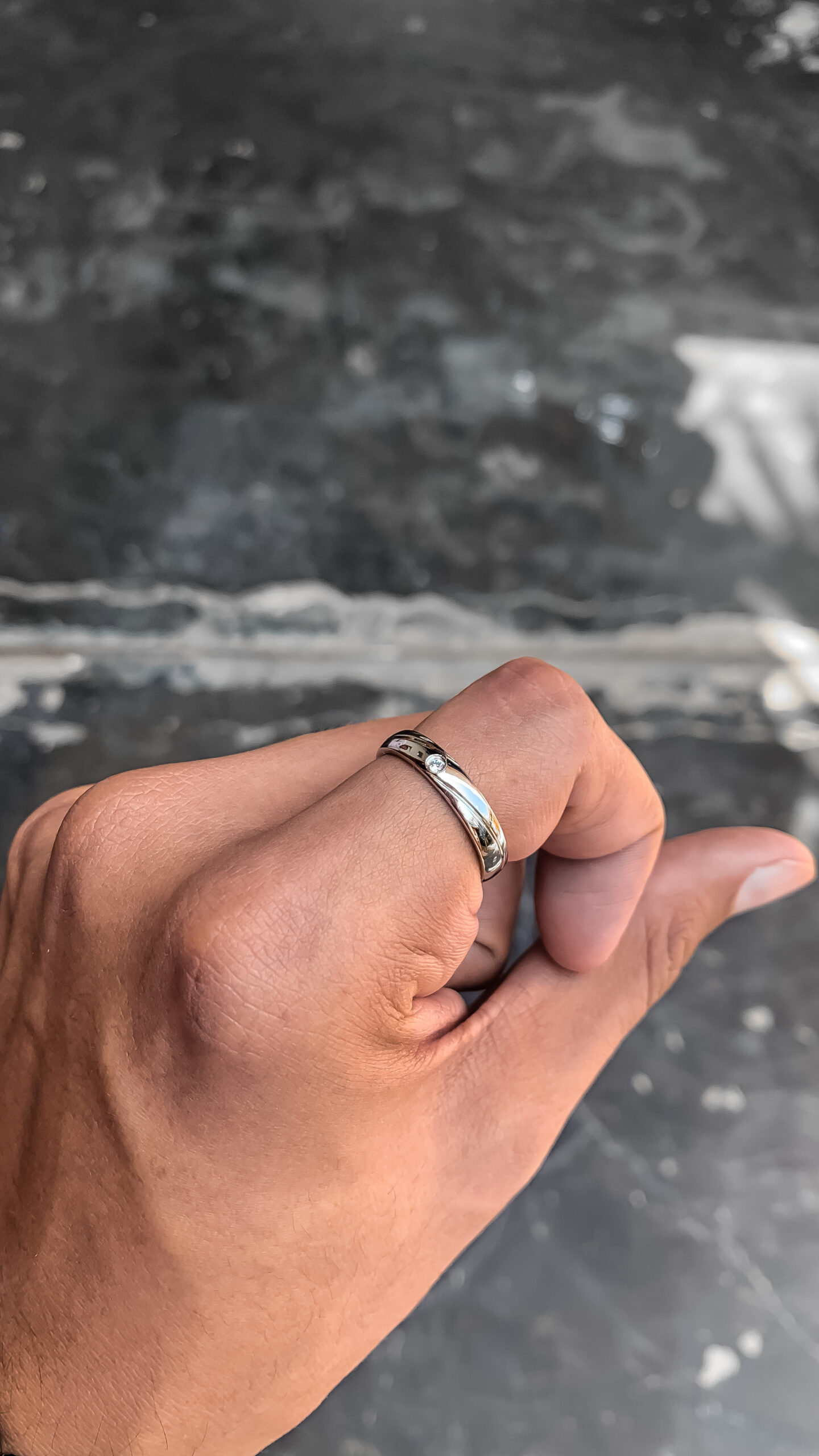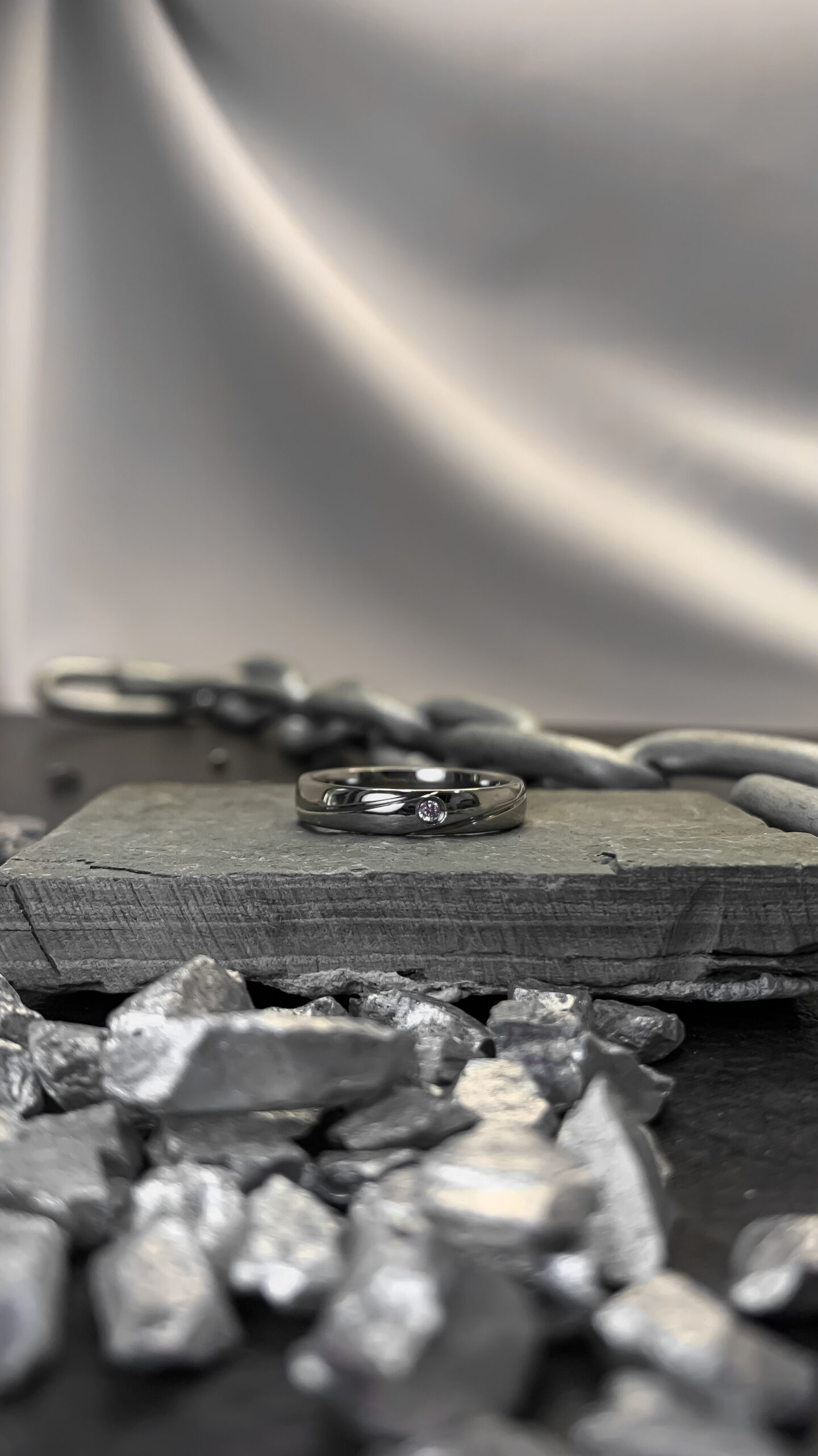Anillo fabricado en titanio inoxidable con revestimiento en platino de alta dureza y resistencia.